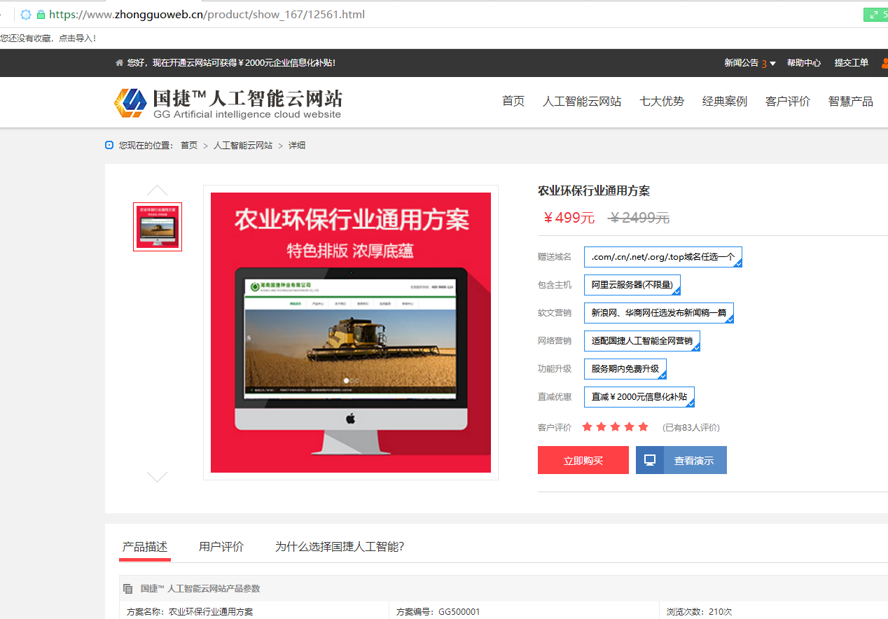 1、进入国捷人工智能云网站的方案库https://www.zhongguoweb.cn/member/reg.php,选择一套符合自己要求的方案;