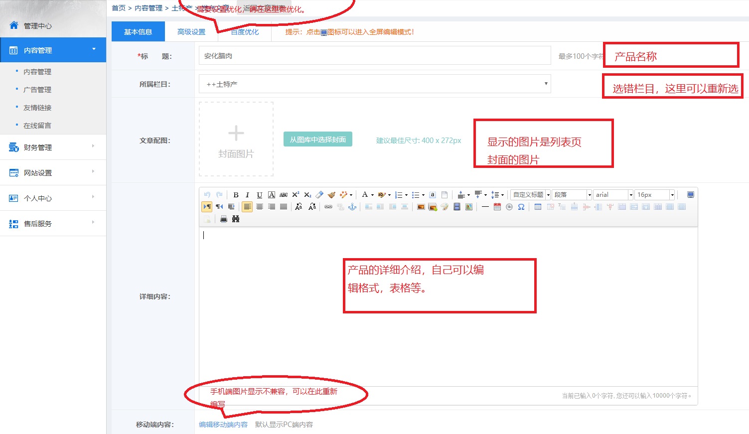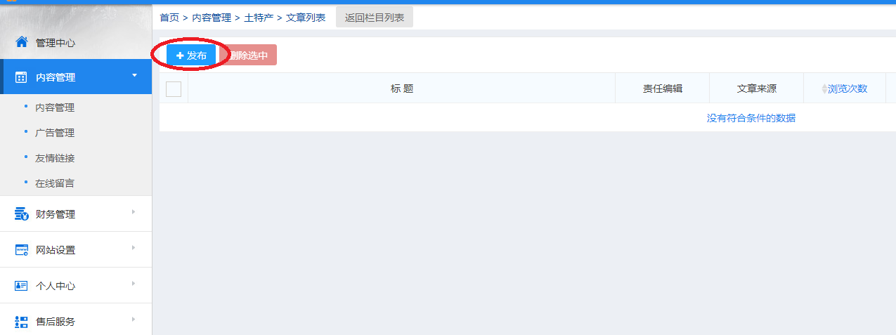 1、登入后台,进入管理中心-内容管理-找到需要加在哪个产品类别下面;